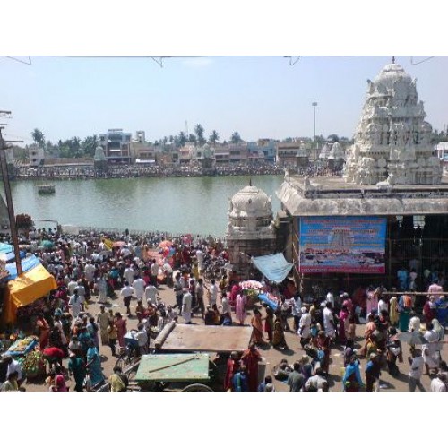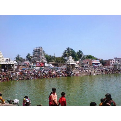 வரலாறு : ஒவ்வொரு முறை பிரம்மதேவன் தூங்கும் பொழுது பிரளயம் ஏற்படும் என நம்பப்படுகிறது. ஒரு முறை அவ்வாறு நடந்ததன் தொடர்ச்சியாகப் பிரளயத்திற்கு பின்பு கலியுகத்திற்கு முன்பு உயிர்களை உருவாக்கும் விதைகளையும் அமிர்தமும் கொண்ட பானை ஒன்று இங்கே இந்த குளத்தில் இருப்பதற்காக இங்கு வந்து சேர்ந்தது. சிவபெருமான் ஒரு வேடன் வேடமிட்டு அம்பெய்து இந்த பானையை உடைத்து உயிர்கள் ஜனிப்பதற்கு ஏது செய்தார்.