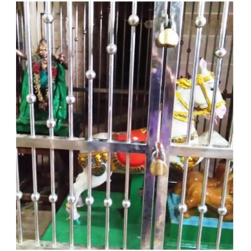 இங்குள்ள தூர்க்கை மண்டபத்தில் உள்ள தூணில் செதுக்கப்பட்டுள்ள நவதூர்க்கை சிற்பவல்லுனர்களால் போற்றும் பொக்கிஷமாய் திகழ்கிறது. மேலும் இங்கு ஆலயத்தின் உட்புறம் இருக்கும் தெய்வங்கள் உக்ரமான அமைப்புடனும் ஆலயத்தின் வெளியில் உள்ள முன் மண்டபத்தில் கருணையே வடிவாய் அஷ்ட லட்சுமிகள் அழகுற காட்சிதருகின்றனர். பிற சிவாலயங்களை விட மிக முக்கியமான ஒன்று இத்திருத்தலத்தில் நவக்கிரக சன்னதியின் அருகில் மேலே குபேரர் கல்லில் செதுக்கப்பட்டுள்ள சிற்பத்தில் காட்சியளிக்கிறார்.