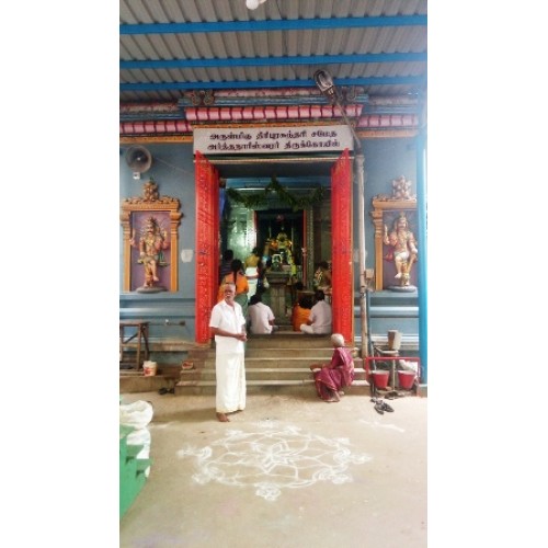கோவில் அமைப்பு : கிழக்கு நோக்கிய கோபுர வாசல் வழியாக கோயிலுக்குள் நுழைந்தால் மகா மண்டபம், பலிபீடம், நந்தி மண்டபம் அமைந்துள்ளது. கருவறை வெளியே விநாயகரும் சுப்பிரமணியரும் தனிச்சன்னதியில் அருள்பாலிக்கின்றனர். மூலவர் அர்த்தநாரீஸ்வரர் லிங்கத் திருமேனியராக வழிபடப்படுகிறார். சுவாமியின் கருவறைக்கு வெளியே விநாயகரும், சுப்ரமணியரும் உள்ளனர். கருவறை கோஷ்டத்தில் தட்சிணா மூர்த்தி, துர்க்கை, சண்டிகேஸ்வரர் அருள்கின்றனர். கருவறை கோஷ்டத்தில் தட்சிணா மூர்த்தி, துர்க்கை, சண்டிகேஸ்வரர் அருள்கின்றனர். சுவாமிக்கு இடதுபுறம், தெற்கு நோக்கி தனிச் சன்னதியில் அம்மன் திரிபுர சுந்தரி காட்சி தருகிறாள். அருகே நவகிரக சன்னதியும் உள்ளது. மூலவருக்கு வலதுபுறம் லக்ஷ்மி நாராயணப் பெருமாள் தனிச்சன்னதியில் கிழக்கு நோக்கி அருள்பாலிக்கிறார். சிவனும் பெருமாளும் அருகருகே அமைந்து அருள்பாலிப்பது சிறப்பு. லக்ஷ்மிநாராயணப் பெருமாள் சன்னதிக்கு எதிரே தனிச் சன்னதியில் கருடாழ்வார் சேவை செய்கிறார். .