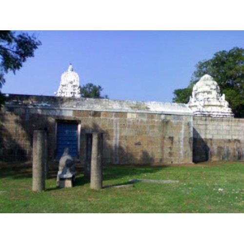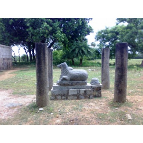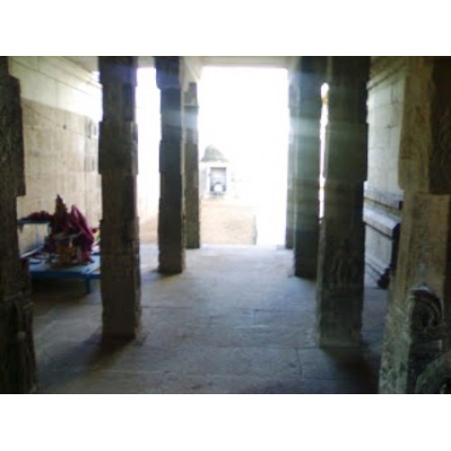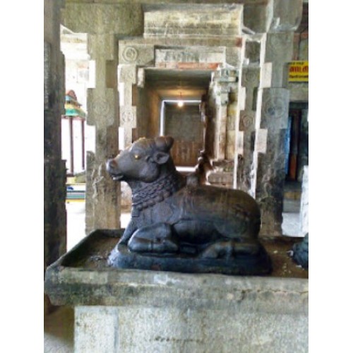 கோவில் அமைப்பு : கூரையின்றி, நான்கு கருங்கல் தூண்கள் மட்டும் நடப்பட்டிருக்க, அதன் நடுவில் வெய்யிலையும், மழையையும் பொருட்படுத்தாமல், இறைவனையே பார்த்துக்கொண்டிருக்கும் நந்தியை காணலாம். இங்கே ராஜகோபுரம் இல்லை. இரண்டு நுழைவாயில்கள். தெற்கே அம்மன் சன்னதிக்கு எதிரில் உள்ள நுழைவாயிலையே மக்கள் பயன்படுத்துகிறார்கள். விநாயகர், முருகன், துர்க்கை, நவகிரகங்கள் ஆகியோரும் இந்த ஆலயத்தில் காட்சி தருகிறார்கள். கோயிலெங்கும் ஏராளமான கல்வெட்டுகள் காட்சியளிக்கின்றன ஒரு தேவதாசி இந்தக் கோயிலுக்கு கொஞ்சம் நிலமும், சண்டிகேஸ்வரர் சிலையும் கொடுத்ததாக ஒரு கல்வெட்டு. தூண்களிலும் கண்கவர் சிற்பங்கள் காட்சியளிக்கின்றன. லிங்கோத்பவர், பிரம்மா, மகாவிஷ்ணு, மார்கண்டேயர், மகிஷாசுரமர்த்தினி ஆகியவை குறிப்பிடத்தக்கவை. இந்த ஊரில் பிறந்த கூற்றுவ நாயனாருக்கு தனி விக்ரஹமும் உண்டு.