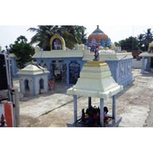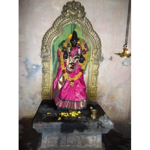 கோயிலின் இடது புறம் அம்மன் சன்னதி உள்ளது. அருகே குபேரலிங்கம் உள்ளது. இங்குள்ள நவக்கிரகங்கள் பிற கோயில்களிலிருந்து சற்றே வேறுபட்ட நிலையில், மேற்கு நோக்கிய நிலையில் சூரியன் அமைந்துள்ள வகையில், காணப்படுகிறது. அம்மனுக்கு வெளிச்சத்தைத் தருவதற்காக இவ்வாறு அமைக்கப்பட்டுள்ளதாகக் கூறுகின்றனர். குருவும் ராகுவும் தெற்கிலும், சூரியனும் புதனும் மேற்கிலும், சந்திரன் கிழக்கிலும், அங்காரகனும், கேதுவும் வடக்கிலும், சனீசுவரர் கிழக்கிலும் அமைந்துள்ளனர். இந்த சன்னதிகளின் கீழே ஆறு ஓடுவதாகக் கூறுகின்றனர். நுழைவாயில் மண்டபத்திலும், அம்மன் சன்னதியிலும் நிலாவும், பாம்பும் காணப்படுகின்றன. அம்மனின் பார்வையில் கோயில் குளம் காணப்படுகிறது.
