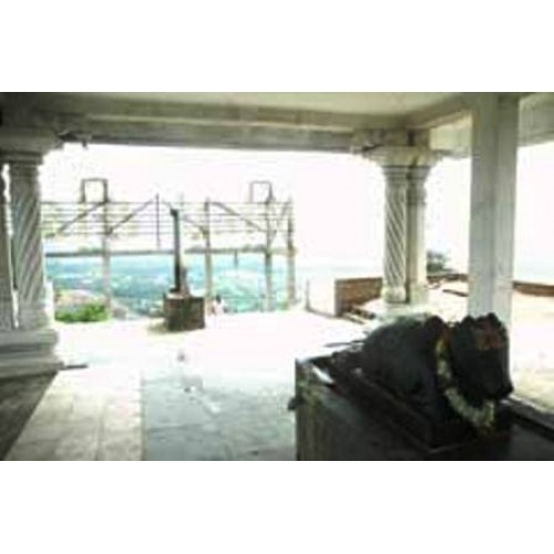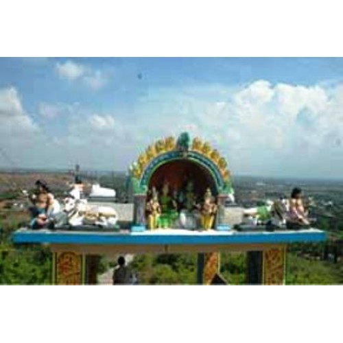 கோவில் அமைப்பு : ஆலயம் கிழக்கு நோக்கி அமைந்துள்ளது.  மலையின் மீது ஏறிச்செல்ல படிக்கட்டுகள் அமைந்துள்ளது. கோயிலின் அடிவாரத்தில் விநாயகர் கோயிலும், நவகிரக சன்னதியும் உள்ளது. நவகிரக சன்னதி அருகில் மும்மூர்த்தி மரம் என்ற மாமரம் இருக்கிறது. இந்த மரத்தில் மூன்று வகை சுவையுடைய மாங்கனிகள் காய்க்கிறது.  விநாயகர் கோயிலுக்கு பின்புறம் ஒரு மண்டபமும், அதை அடுத்து மிகப்பழமையான புற்று ஒன்றும் உள்ளது. இந்த புற்றில் வயது முதிர்ந்த சர்ப்பம் இருப்பதாக இப்பகுதி மக்கள் கூறுகின்றனர். இதனருகே கடுமையான வறட்சி காலத்திலும், வற்றாமல் நீர் சுரந்து கொண்டிருக்கும் கிணறு உள்ளது. இந்த கிணற்றிலிருந்து தான் மலைக்கு குழாய் மூலம் தண்ணீர் கொண்டு செல்லப்படுகிறது. மலைப் படிக்கட்டு வழியே நடந்து சென்றால் அரை மணி நேரத்தில் மலையின் உச்சியை அடைந்து விடலாம்.  சுவாமியின் எதிர்புறத்தில் நந்தியும், வலப்புறத்தில் விநாயகரும், இடப்புறத்தில் முருகனும் அருள்பாலிக்கிறார்கள். இப்பகுதியில் வாழும் மலை ஜாதி மக்கள் இவரை குல தெய்வமாக வழிபடுகிறார்கள்.