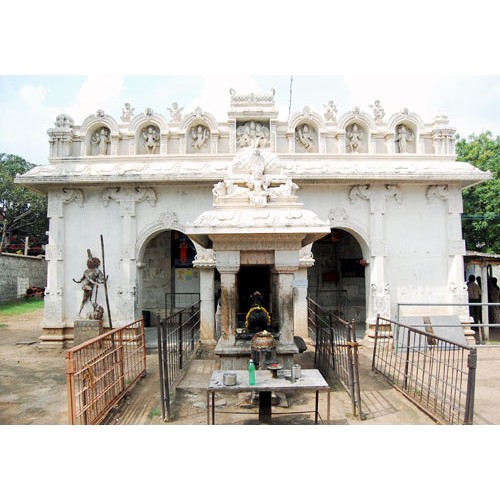 கோவில் அமைப்பு : இக்கோவிலின் முதன்மைக் கடவுளான சிவன், விருந்தீசுவரர் என அழைக்கப்படுகிறார். விஸ்வநாயகி அம்பாள் தனிச் சன்னிதியில் தாமரைப் பீடத்தில் காட்சியளிக்கிறார்.  கோவிலுக்குள் லட்சுமி நாராயணப் பெருமாள் என்ற பெயருடன் பெருமாளுக்கு ஒரு சிறிய தனிச் சன்னிதி உள்ளது. இக்கோயிலில் காணப்பட்ட கல்வெட்டின் படி ஏழாம் நூற்றாண்டில் குலோத்துங்க சோழன் காலத்தில் இது கட்டப்பட்டது.  இதில் கன்னிமூல கணபதி, விருந்தீஸ்வரர், விஸ்வநாயகி அம்பாள், சுப்பிரமணியர், லட்சுமி நரசிம்ம பெருமாள் ஆகிய தெய்வங்களுக்கு கோபுரங்கள் எழுப்பப்பட்டன. மேலும் துர்க்கை, சண்டிகேஸ்வரர், சூரியன், சந்திரன், நவநாயகர்கள், சனீஸ்வரன், ஆஞ்சநேயர், அதிகாரநந்தி உற்சவமூர்த்தி சந்நிதிகளும் கட்டப்பட்டன.