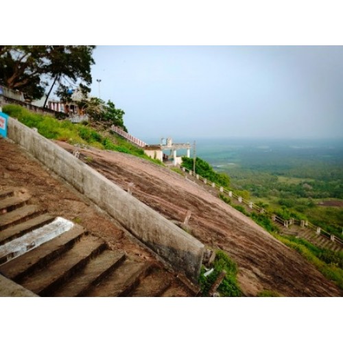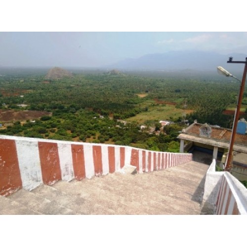 தேவார வைப்புத் தலமான இந்தக் கோவில் கடல் மட்டத்தில் இருந்து சுமார் 520 அடி உயரத்தில் உள்ளது. கோவிலுக்கு செல்ல சுமார் 600 படிக்கட்டுகள் ஏற வேண்டும். அந்த படிக்கட்டுகள் ஸ்கந்த கோஷ்டப் பித்ருக்கள் வசிக்கும் தேவ படிக்கட்டுக்கள் எனச் சொல்லப்படுகிறது. ஆகையால், இந்த தலத்திற்கு வந்து முன்னோருக்கு தர்ப்பணம் செய்தால், நம் சந்ததிகளுக்கு நல்ல சிறப்பான வாழ்வு அமையும். நல்ல வாரிசுகள் உருவாகும் என்பது ஐதீகம். இதை திரிகூடமலை என்றும் சொல்வர். இரண்டு மலைகள் இந்த மலையினைத் தொட்டுக் கொண்டிருப்பது போல் தோன்றுவதால் இந்தப் பெயர் ஏற்பட்டது. மலைப்பாதையின் துவக்கத்தில் வல்லபை விநாயகர் சன்னதி உள்ளது. இவரை வணங்கி, அடிவாரத்திலுள்ள பாதமண்டபத்தைத் தரிசித்து படியேற வேண்டும். இரண்டு பாதங்கள் இந்த சன்னதியில் உள்ளன. பாதையின் நடுவில் நடுவட்ட விநாயகர் சன்னதி உள்ளது. பின்னர் இடும்பன் சன்னதியை வணங்க வேண்டும். சப்தகன்னியர் சிலை சிவாலயங்களில் மட்டுமே இருக்கும். ஆனால், இது முருகன் தலமாக இருந்தாலும் இங்குள்ள தீர்த்தக்கரையிலும் சப்த கன்னியர் இருப்பது சிறப்பு. உமையவளின் ஏழு சக்திகளே சப்தகன்னியர் ஆவர்.