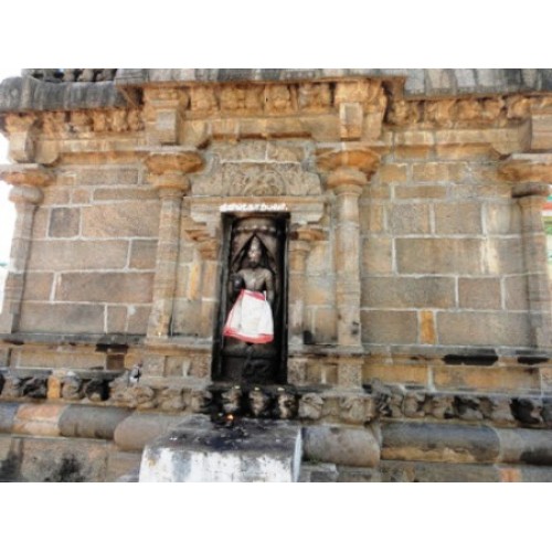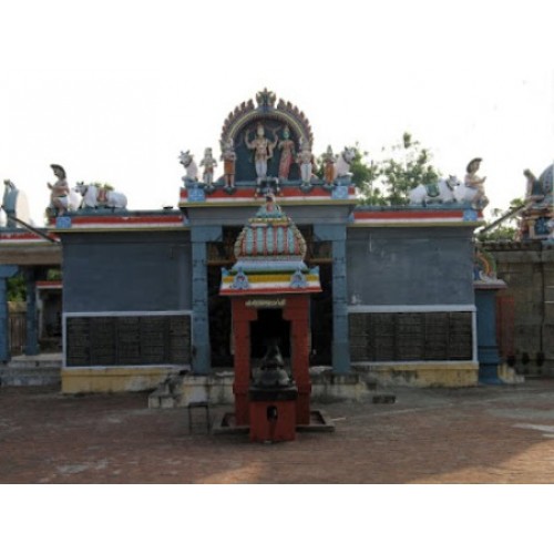 கோவில் அமைப்பு : 3 நிலை ராஜ கோபுரத்துடன் இவ்வாலயம் காட்சி அளிக்கிறது. வாயிலின் இருபுறங்களிலும் அதிகார நந்தியர் துணைவியருடன் தரிசனம் தருகின்றனர். கொடிமரம் ஏதுமில்லை. பிராகாரத்தில் சூரியன், விநாயகர், கிராத மூர்த்தி, மகாவிஷ்ணு, சுப்பிரமணியர், மகாலட்சுமி, நவக்கிரகம், காலபைரவர், சந்திரன் சந்நிதிகள் உள்ளன. உள்பிரகார நுழைவு வாசலின் இருபுறமும் அதிகார நந்தியர் தமது துணைவியருடன் உள்ளனர். உள் மண்டபத்துள் துவாரபாலகர்களைத் தரிசிக்கலாம். மண்டபத்தின் வலதுபுறம் தெற்கு நோக்கிய அம்பாள் சந்நிதி உள்ளது.