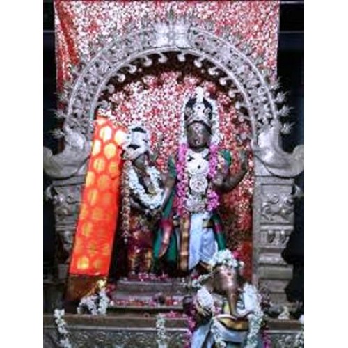 இங்கே, மேற்கு நோக்கியபடி பெருமாள் காட்சி தருவது சிறப்பு என்கின்றனர். அதாவது, திருமணக் கோலத்தில் நின்றருளும் சிவ பார்வதியைப் பார்த்தபடியே அந்தத் திசை நோக்கி நிற்கிறாராம் பெருமாள். உத்ஸவரின் திருநாமம் ஸ்ரீவரதராஜர். மடியில் ஸ்ரீலட்சுமியை அமர்த்தியபடி, கருணையும் கனிவும் பொங்கக் காட்சி தரும் ஸ்ரீலட்சுமி நாராயணரைத் தரிசித்தால் சகல பாவங்களும் பறந்தோடிவிடும்.