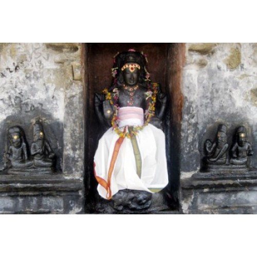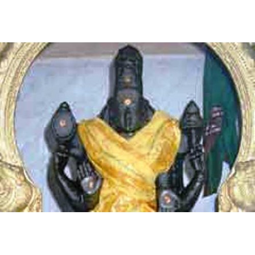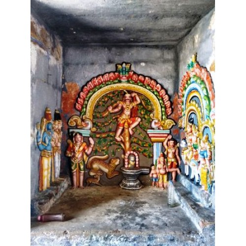 அன்று மகாசிவராத்திரி தினம். புலியாக மரத்தடியில் இருந்த சிவபெருமான் மீது அவன் பறித்துப் போட்ட இலைகள் விழுந்தன். அவன் உட்கார்ந்திருந்த மரம் விலவமரம். இரவு முழுவதும் சிவபெருமானை வில்வம் கொண்டு அர்ச்சித்ததால் அவனுக்குச் சிவபதம் கிடைத்தது. சிவபெருமான் அவனுக்கு காட்சி அளித்து மோட்சம் அளித்தார். சிவராத்திரியை அடுத்த நாள் விடியற் காலையில் வேடன் ஆயுள் முடிகிறது. யமன் அவன் உயிரைப் பறிக்க வந்தான். நந்திதேவர் அவன் வருவதைக் கவனிக்கவில்லை. சிவன் தட்சிணாமூர்த்தி வடிவம் கொண்டு யமனை விரட்டி அடித்தார். யமனை உள்ளே விட்டதற்காக சிவன் நந்திதேவரைக் கடிந்து கொள்ள, நந்தி வெளியே ஓடிவரும் யமனை தன் மூச்சுக் காற்றால் நிறுத்தி விட்டார். பின்னர் யமன் சிவனை வேண்டி மன்னிப்புக் கேட்க, யமனை வெளியேற அனுமதிக்கும்படி நந்திக்கு கட்டளையிட்டார்.
