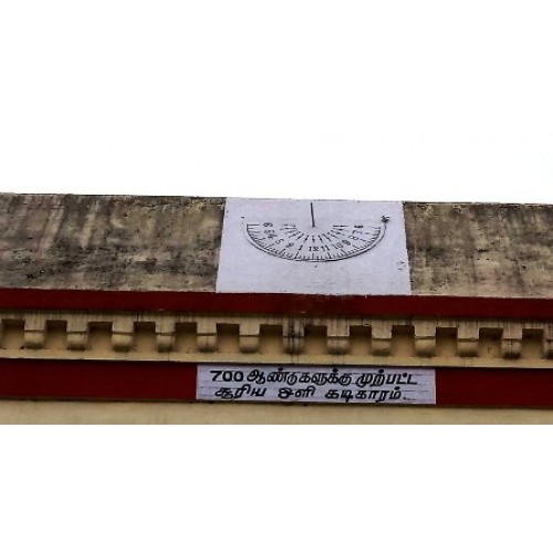 கோயிலின் தென்புற மதில் சுவர் அருகே சுமார் 700 ஆண்டுகளுக்கு முற்பட்ட சூரிய ஒளி கடிகாரம் அமைந்துள்ளது. காலையில் சூரியன் உதிப்பதிலிருந்து மாலையில் சூரியன் மறையும் வரை சூரியன் செல்லும் பாதையைக் கணக்கிட்டு இந்த கடிகாரம் அமைக்கப்பட்டுள்ளது. அரை வட்ட கோளம் அமைக்கப்பட்டு அதைச்சுற்றிலும் காலை 6 முதல் மாலை 6 மணிவரை எண்கள் செதுக்கப்பட்டுள்ளன. இதன் நடுவே பித்தளையால் ஆன ஆணி ஒன்று பொருத்தப்பட்டுள்ளது. சூரியனின் ஒளி இந்த ஆணியில் பட்டு அதன் நிழல் எந்த எண்ணில் விழுகிறதோ அதுவே அப்போதைய நேரம் ஆகும்.